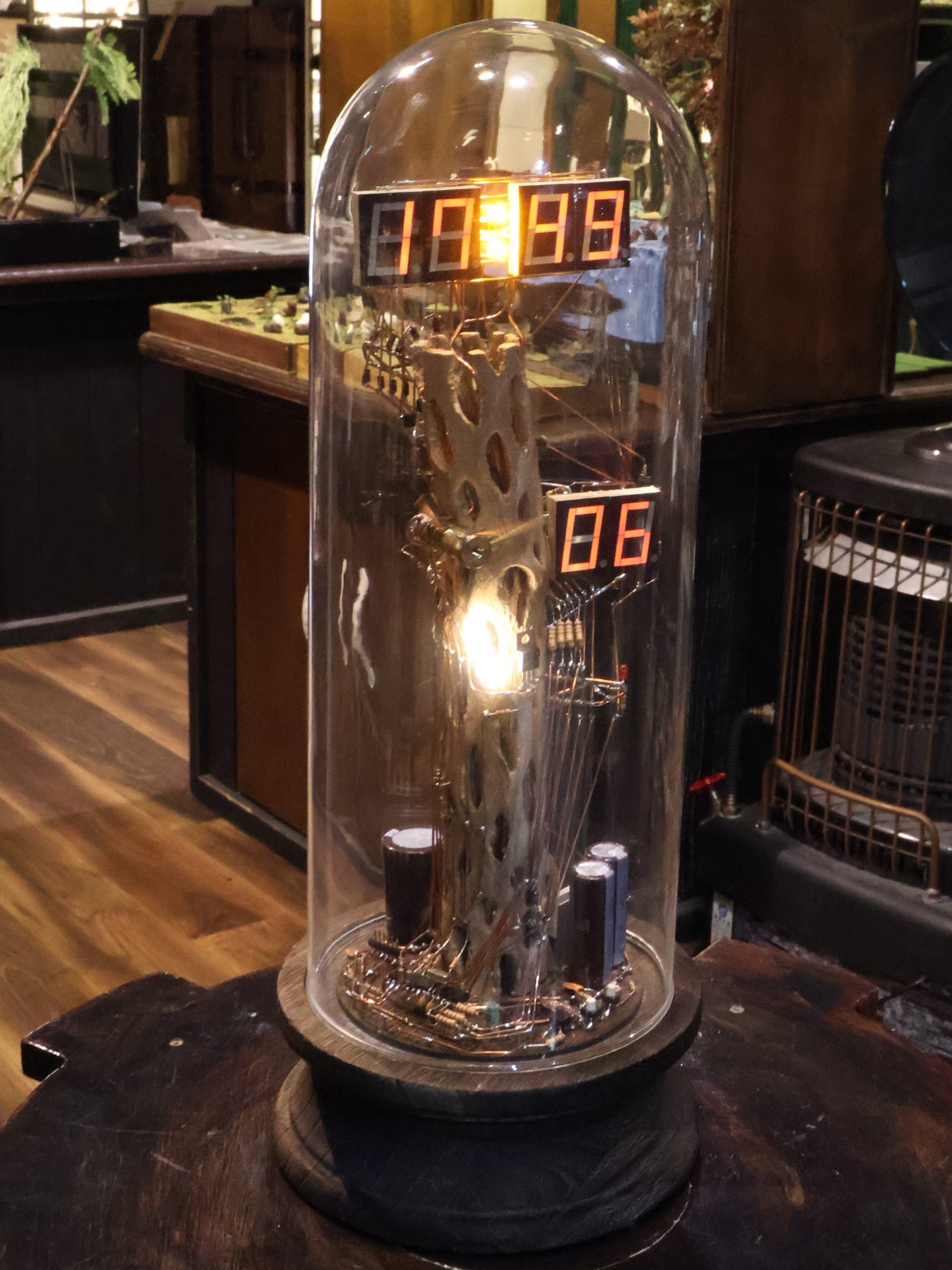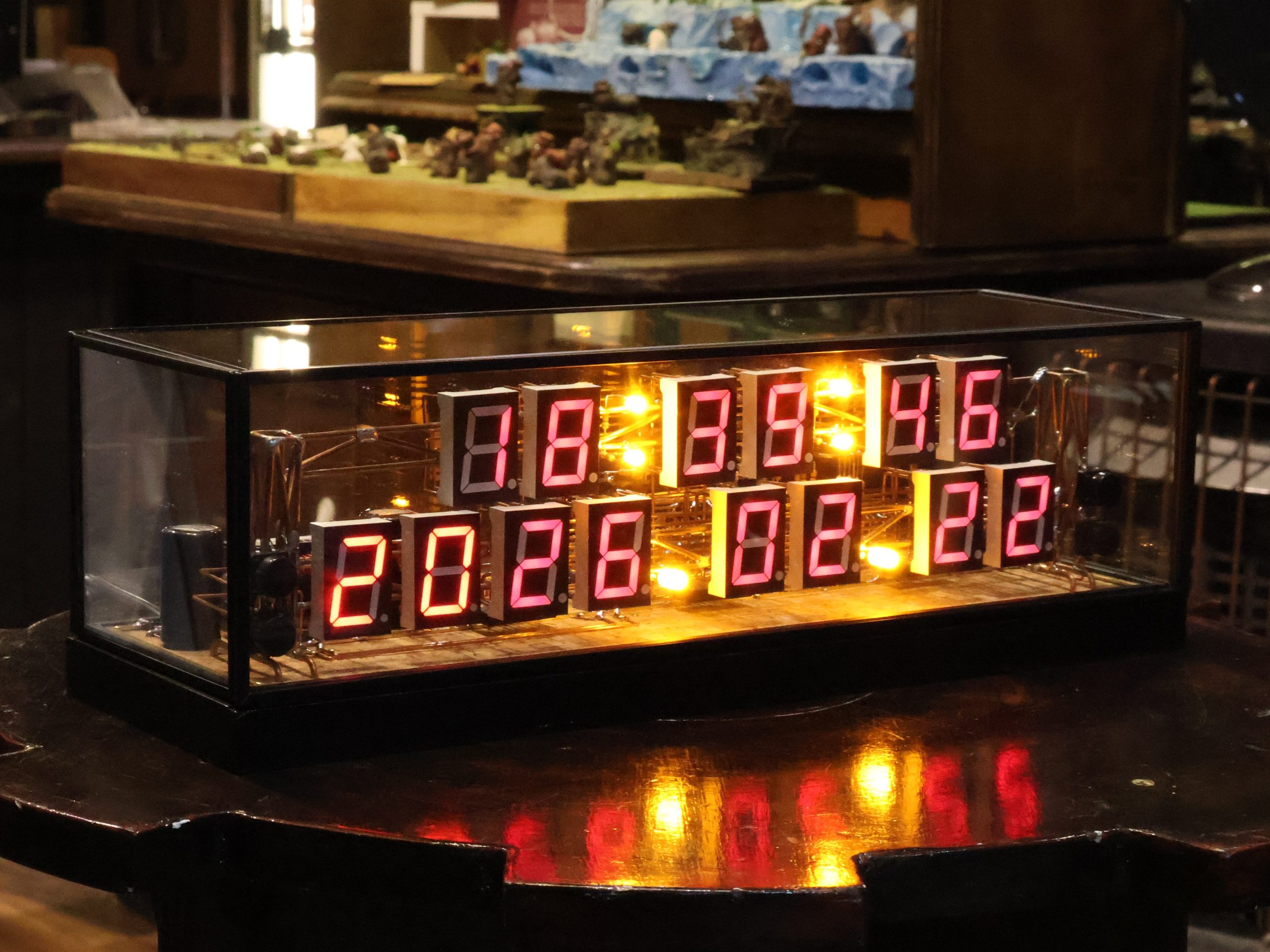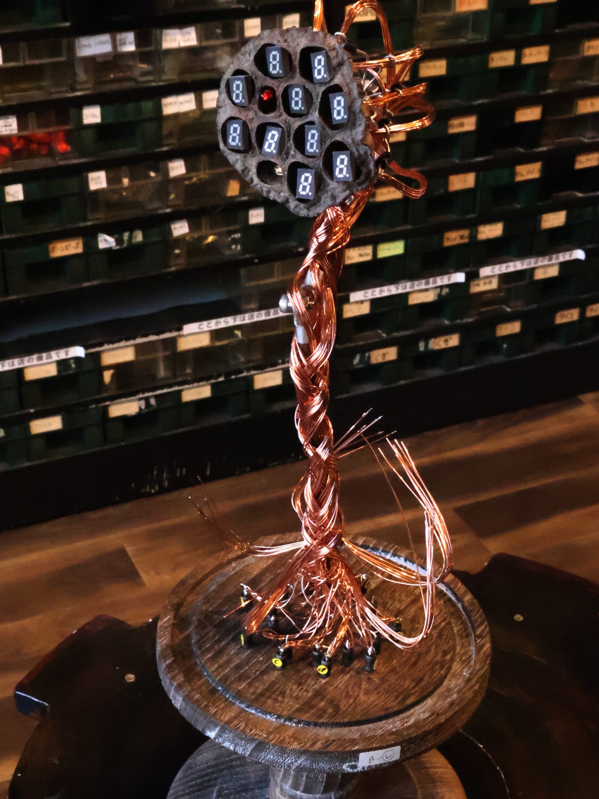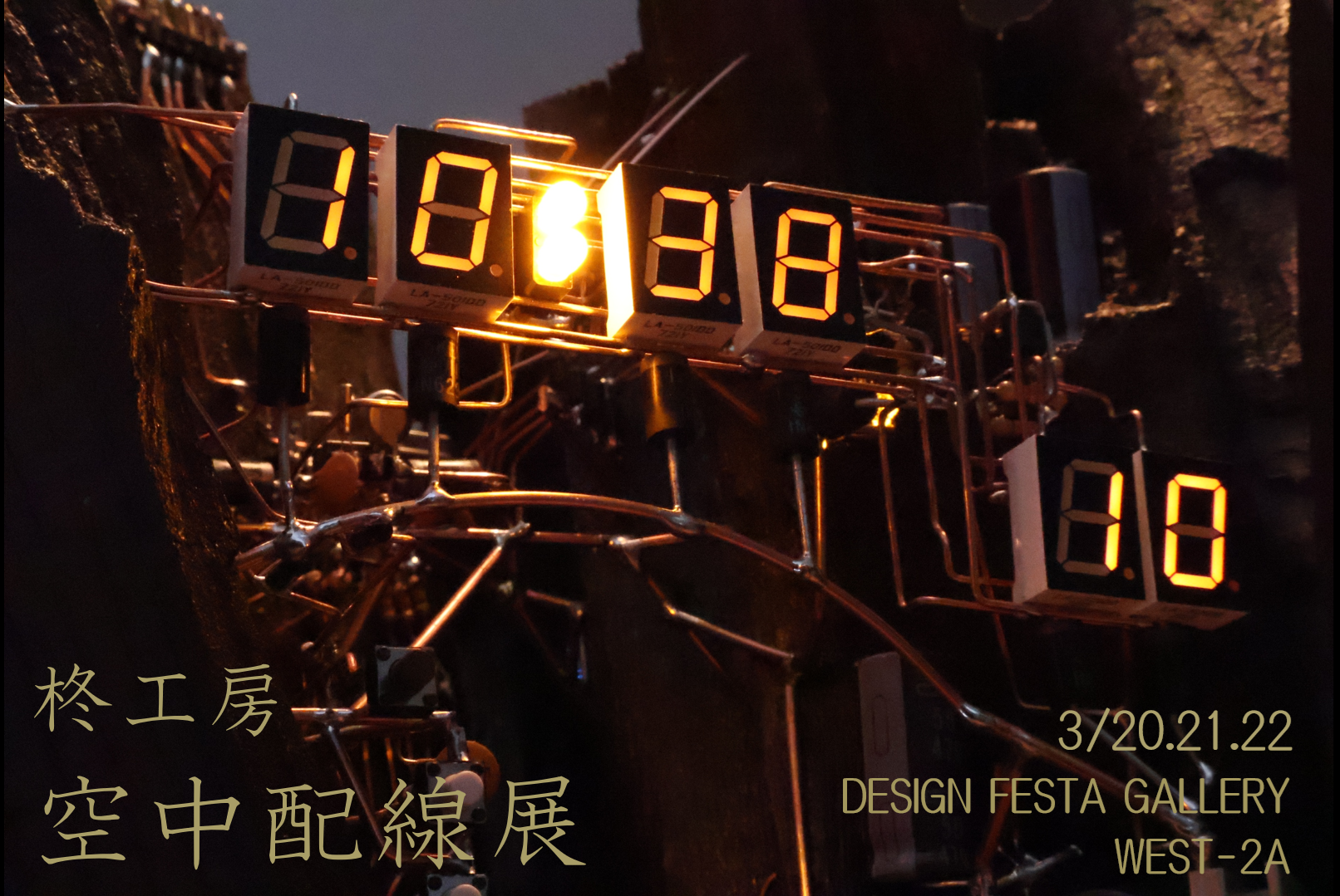 表示する点は、その位置で表示し、表示しない点は、一番下のビットに指定します。これにより、表示したい文字が浮き出るのです。すべてのドットを表示させた写真が下です。